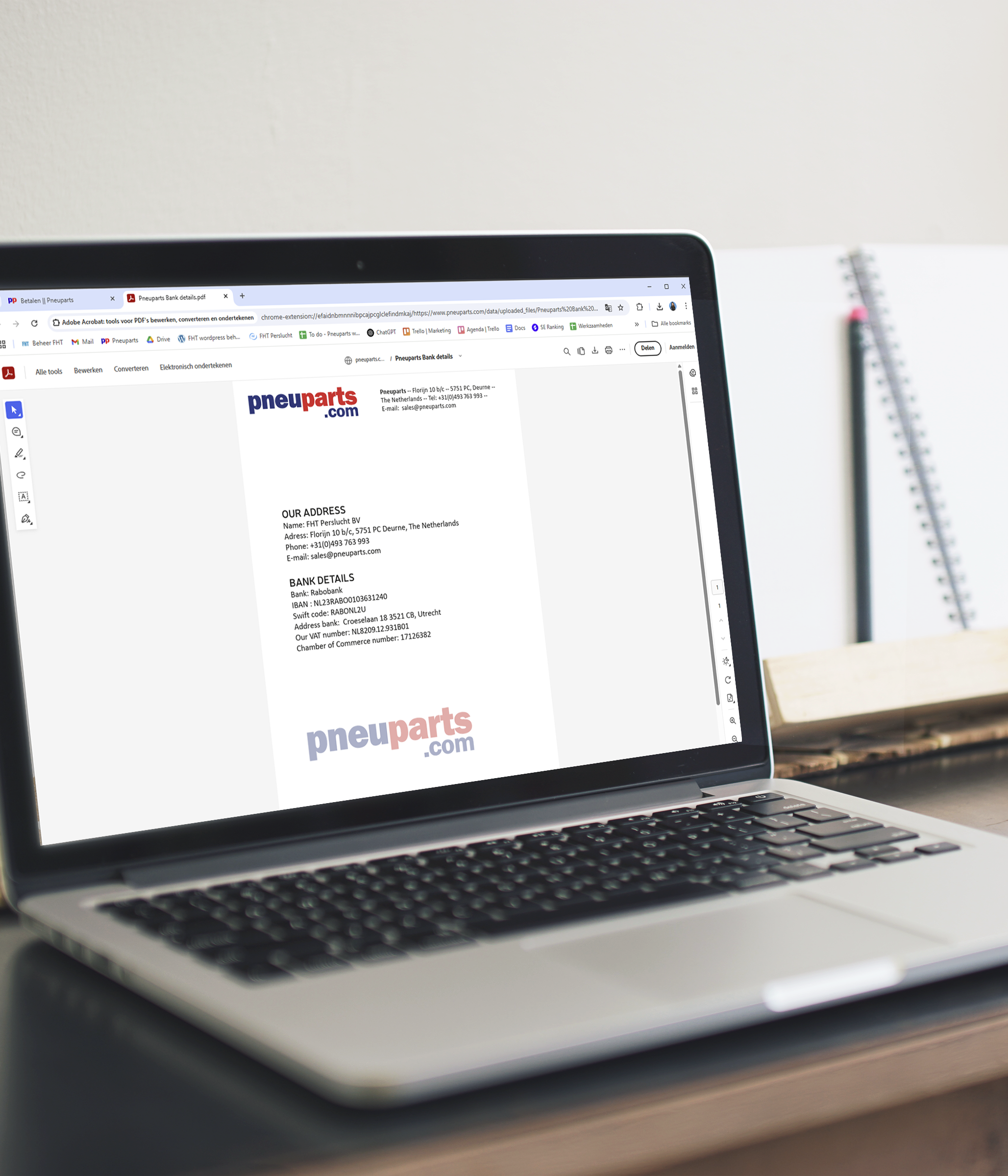 Kein Problem. Bei Pneuparts können Sie Rechnungsbeträge auch per Banküberweisung bezahlen.
